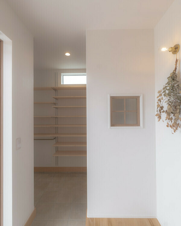 玄関の奥には、靴やアウトドア用品をたっぷり収納できるよう、広めの土間収納を設けました。