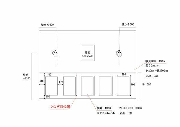 モールはサンゲツの壁装飾見切り材を採用。