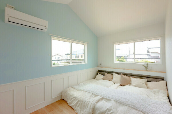 ベッドを置いてもデザインが隠れないよう、あえて高めに設定しました。