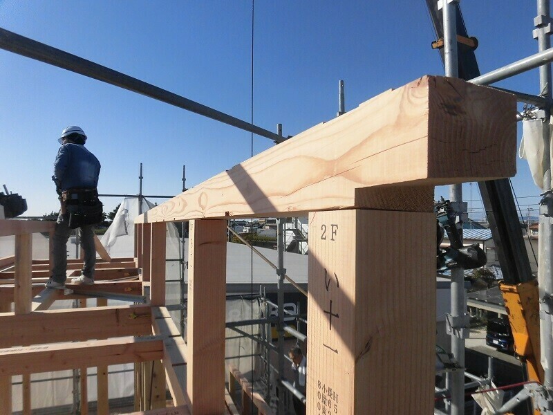 慣れないうちは梁の上を歩くのも結構怖いものですが、経験を積んだ大工さんにとってそれはお手の物。