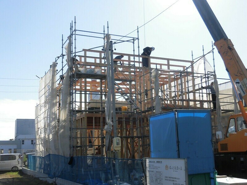 ほっと住まいるでは通常、建て方の作業を2日掛かりで行っています。