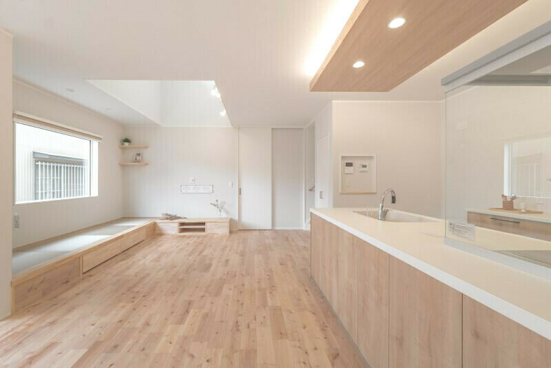 日当たりの条件に合わせて上から光を取り込む設計とすることで、一日を通してやさしい光が家族の時間を照らします。