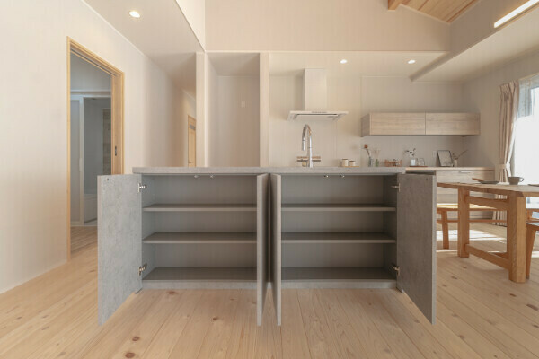 収納スペースもたくさん。(扉材ももちろん無垢の木です)