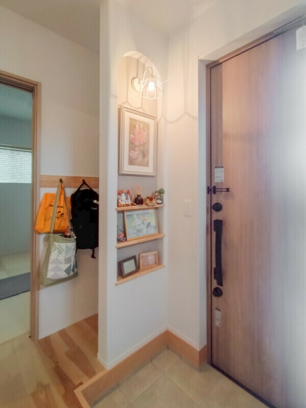 壁にはお気に入りのリースや小物が飾られ、訪れる人や帰ってきた家族をあたたかくお出迎え。