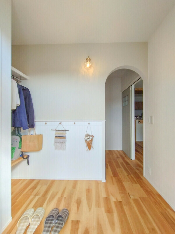 無垢の木ならではのあたたかみと、広々とした空間でのびのび過ごすご家族の様子が伝わってきます。