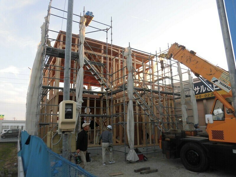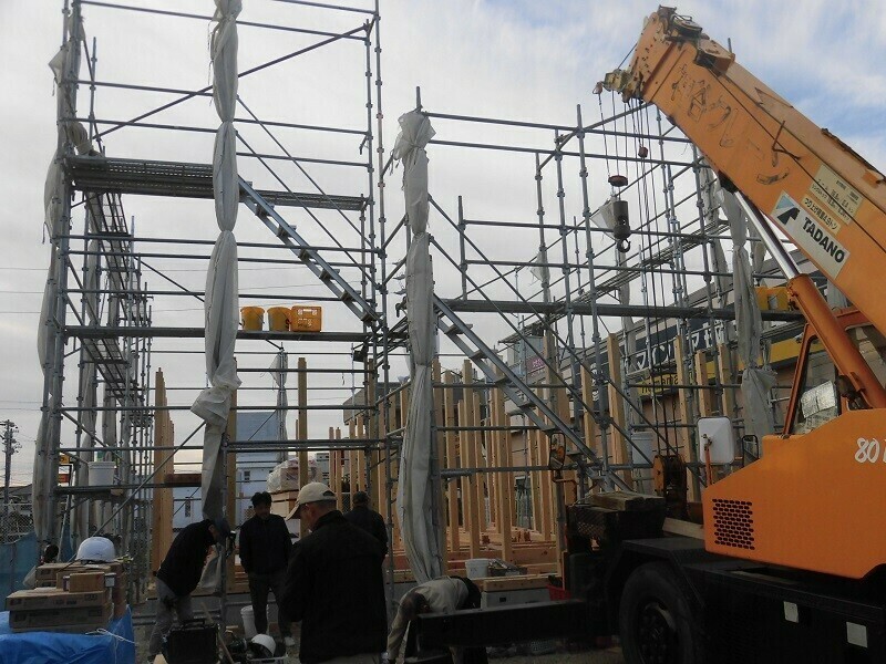 ほっと住まいるでは通常、建て方の作業を2日掛かりで行っています。