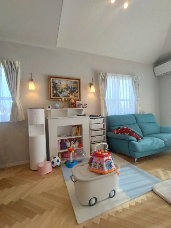 ウォーターサーバーも一瞬それと分からないほど、インテリアになじむデザインです。収納されたおもちゃでさえ、インテリアの一部に。