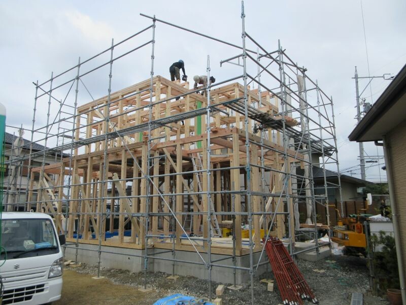 先週のこと・・・浜松市浜名区西美薗にてF様邸の上棟が行われました。