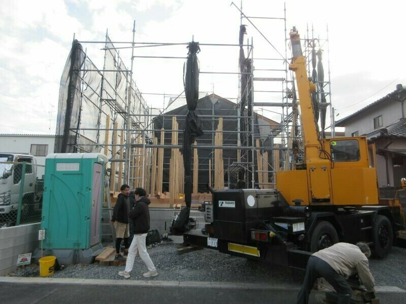 ほっと住まいるでは、いつも建て方作業を2日間にわたって行っています。