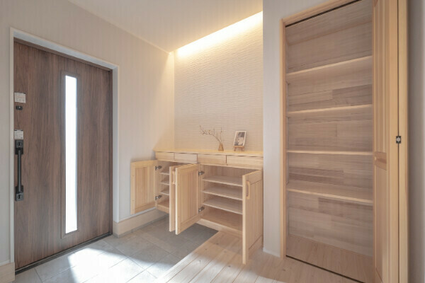 収納内部も板張りにしています。材は防虫調湿消臭効果のある”桐材”を贅沢に使用しています。