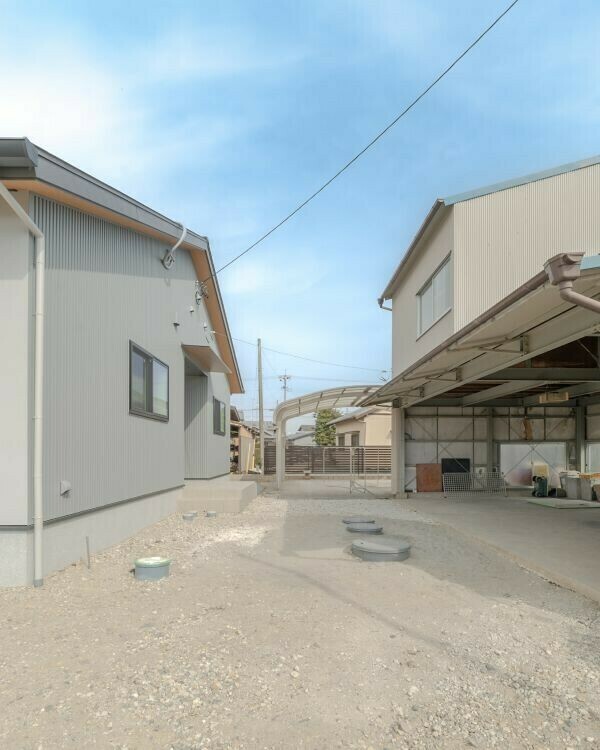 これまで使ってきた農機具小屋やカーポート、塀はそのまま活かしながら、住まいだけを今の家族のかたちに合わせて設計しました。