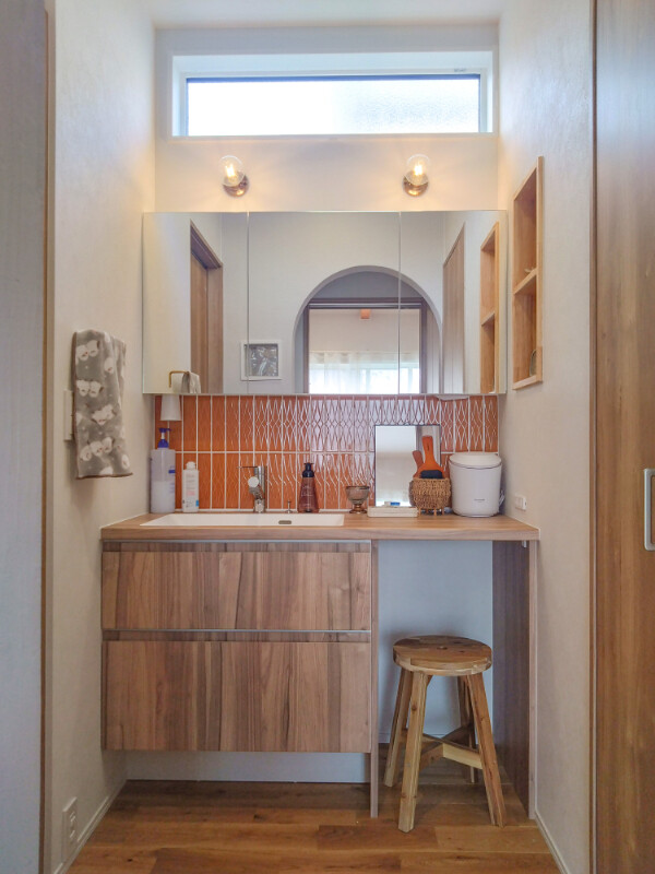 家族の衣類や下着、タオル類は脱衣室に収納されています。