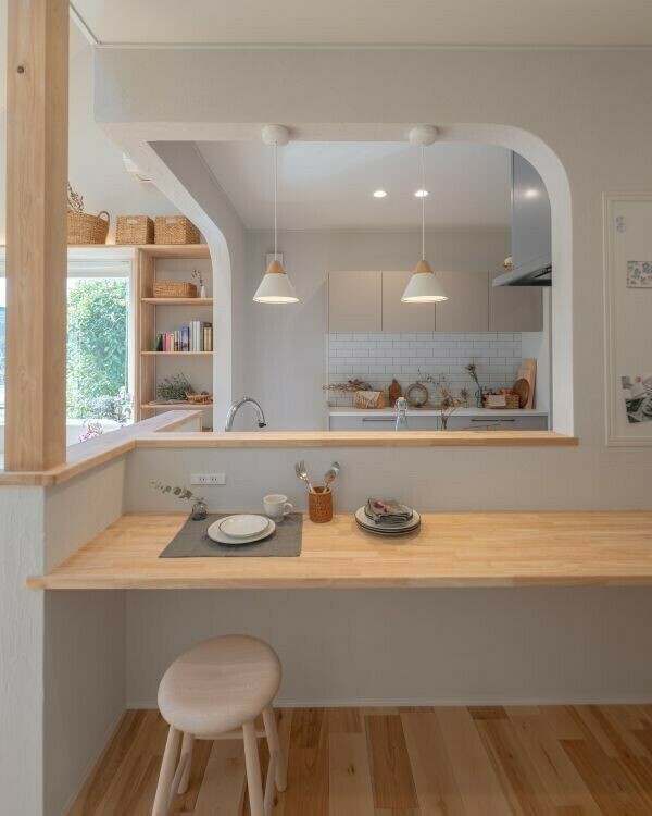 まるでカフェのような気分にしてくれるキッチン回り。正面のカウンターでは、ちょっとした食事やお子さんの宿題スペースにも活用できます♪