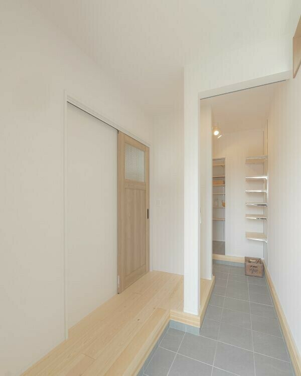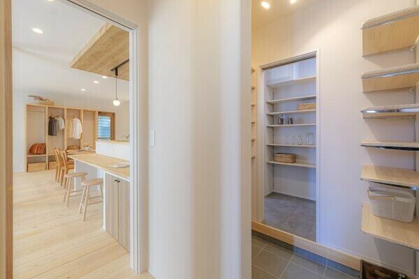 買い物から帰ったら、そのまま行けるパントリーは重たい荷物もスッとしまえて便利です📦
