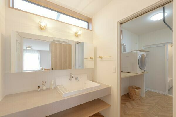 料理と洗濯を行き来できる動線を確保し、毎日の家事が負担になりにくい工夫を取り入れました👕