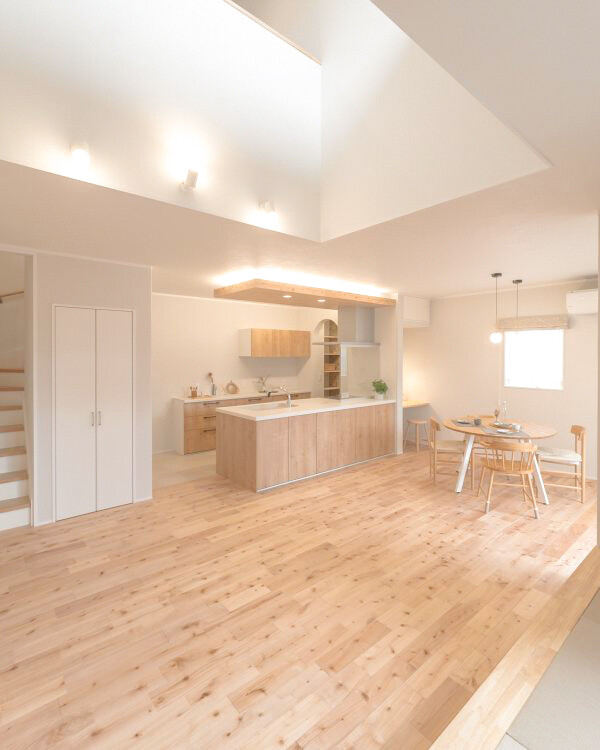 無垢床のやさしい肌触りは子供の健やかな心を育みます。家族の暮らしにマッチした間取りや、木の素材感を生かした温かみあるデザインが特徴です。 -